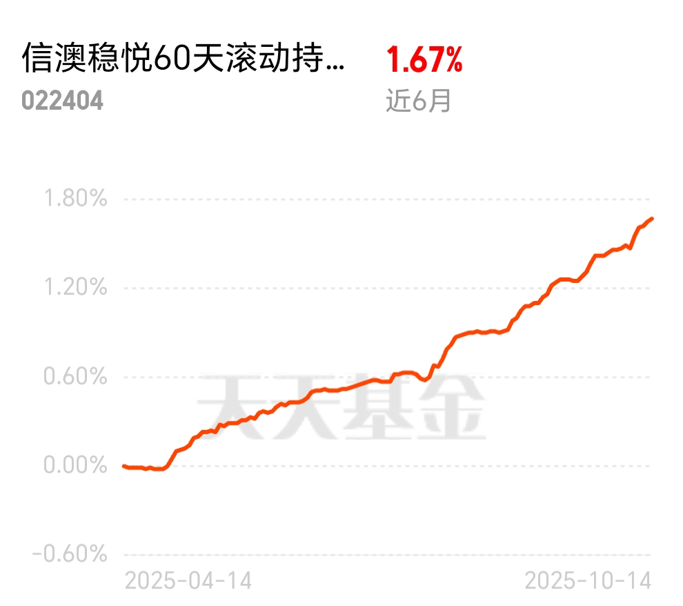 $信澳稳悦60天滚动持有债券C$近六个月收了167个蛋,走势也挺稳的,买点试试看