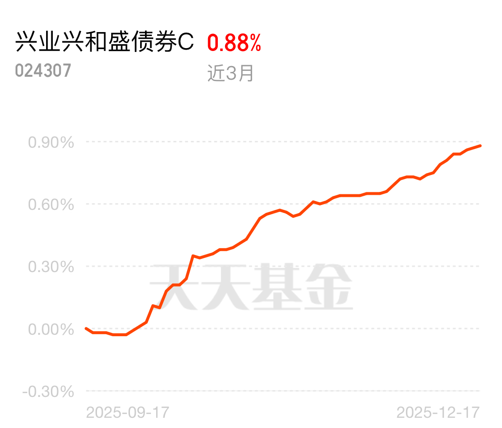 近期市场情绪忽高忽低,理财想不踩坑不容易。$兴业兴和盛债券C$ 逆势表现超棒,近 3 个月 88 个蛋,天天连涨超牛,先稳赚打底,再追求更多回报,太让人放心了!