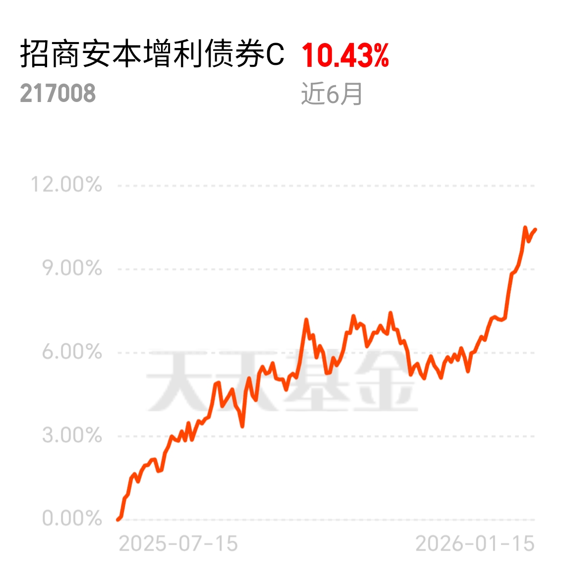 固收 + 市场现在特别火,不少人都在对比挑选优质产品。招商安本增利债券 C 近 6 月收益 10.43%,昨天调整还收了 13 个蛋,今天又调整是不是该出手了?它比不少固收 + 都强,年前怕波动想止盈又留权益仓位的,选它准没错。$招商安本增利债券C$