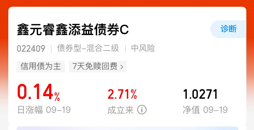 $鑫元睿鑫添益债券C$ 今天收了14个蛋,表现相当优秀啊,继续看好它