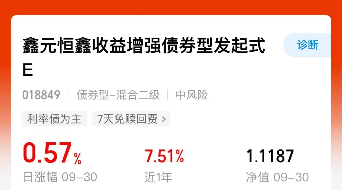 $鑫元恒鑫收益增强债券E$今天收了57个蛋。太给力了吧