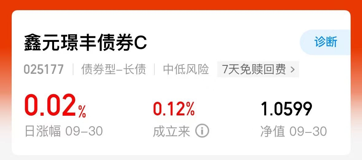$鑫元璟丰债券C$今天收了2个蛋。棒棒