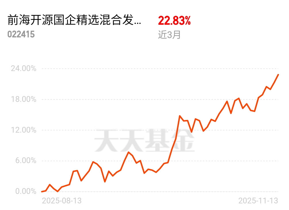 前海开源国企精选混合发起C的聪明之处,在于没有拘泥于单一市场,而是通过灵活配置兼顾两地红利优势。从基金持仓逻辑来看,其重点布局的国企标的本身就是红利资产的核心力量——A股国企红利股享受经济复苏红利,港股国企则受益于估值修复与政策支持,这种“双线布局”既规避了单一市场的波动风险,又能最大化捕捉红利资产的整体机会。基金近3个月涨幅22.83%、近6个月涨幅32.99%的业绩表现,也印证了这种策略的有效性,在震荡市中实现了稳健增值。