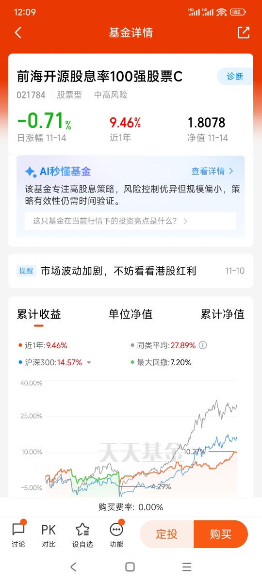 我认为,牛市来了也要做好防御,配置红利基金,因为红利基金在市场震荡和下行阶段防御属性较为突出。