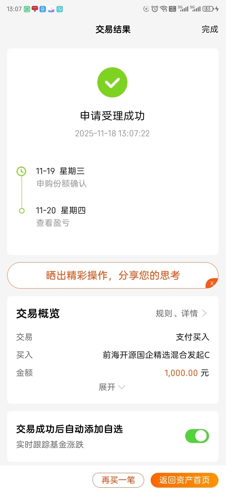 最近市场行情震荡起伏,那些畏高的资金纷纷转道,一头扎进了红利赛道里。我最近一直紧盯的前海开源国企精选混合发起C(022415),表现很好!近3个月涨幅达18.24%,近1年更是涨了33.87%!瞅准当下这形势,我今天果断再加仓一笔!$前海开源国企精选混合发起C$
