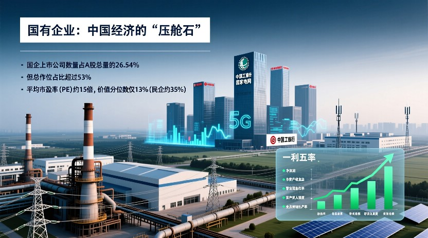国有企业,作为中国经济的“压舱石”,在A股市场占据着举足轻重的地位。数据显示,国企上市公司数量仅占A股的26.54%,但总市值占比却超过53%。这些企业多在关系国家安全与经济命脉的关键领域深耕,如能源、金融、通信等,拥有稳定的盈利能力和丰富的资源储备。
