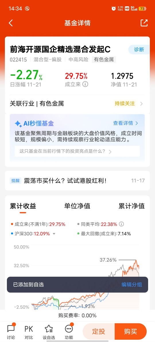 朋友们大家好,今天来唠唠我为啥会选前海开源国企精选混合发起C(022415)这只基金呀。