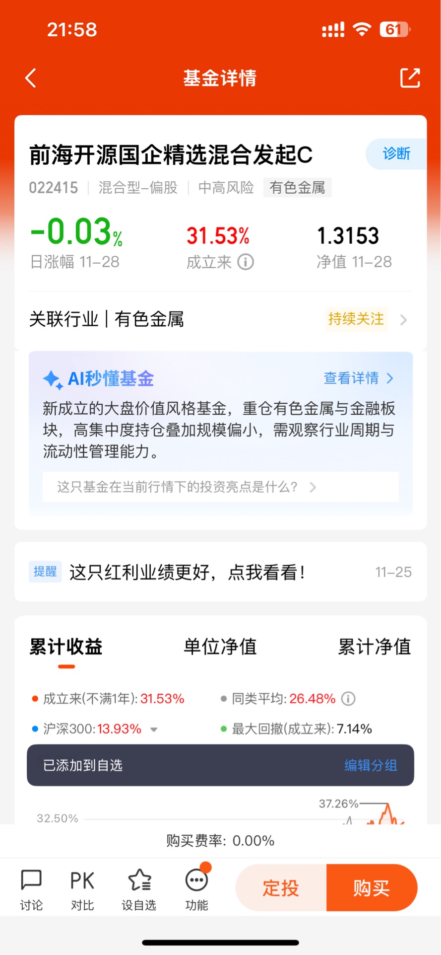 其次,主动管理策略让基金兼具灵活性与抗风险能力。不同于被动跟踪红利指数的基金,该基金通过基本面筛选和仓位动态调整,在坚守国企红利核心的同时,会适度布局具备成长潜力的国企改革标的。这种策略既避免了纯指数基金的行业集中风险,又能把握国企转型带来的超额收益,从实际表现来看,基金近一年的收益不仅跑赢中证国企红利指数,回撤幅度也显著低于同类主动红利基金。
