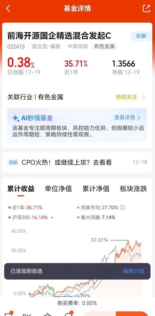 这种费率结构对于采用定投方式参与的投资者尤为友好。通过每月或每季度固定投入,投资者无需支付高昂的申购费,能够有效降低投资成本,长期来看,成本的降低将显著提升投资收益。以10万元投资本金、持有3年为例,相比收取1.5%申购费的同类基金,前海开源国企精选混合发起C能够为投资者节省1500元的申购成本,若考虑复利效应,实际收益差距更为明显。
