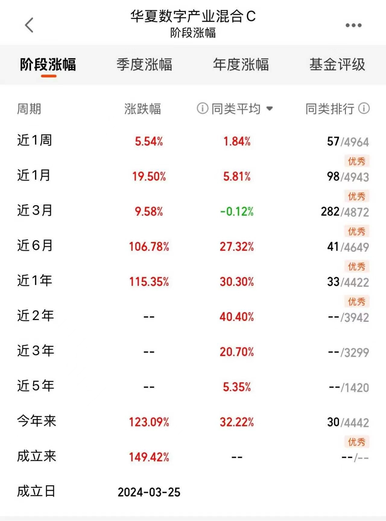 加仓$华夏数字产业混合C$绝真是太明智了,昨天大涨5.13%,这基近一年收益涨超