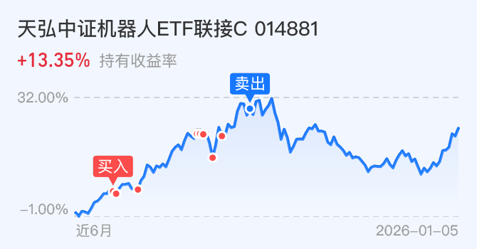 机器人板块低开早盘惯性高走,冲高无量,盘中又震荡回落,截至发稿小幅下跌。趋势上行中也不能完全避免波动,短期是有震荡蓄力的需要,震荡确认支撑后才有望继续高走。今日不动。$天弘中证机器人ETF发起联接C(OTCFUND|014881)$