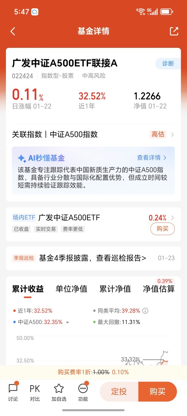 A500里面都是大市值的公司,其中不乏权重股,长期拿着就相当于是相信市场大方向了
