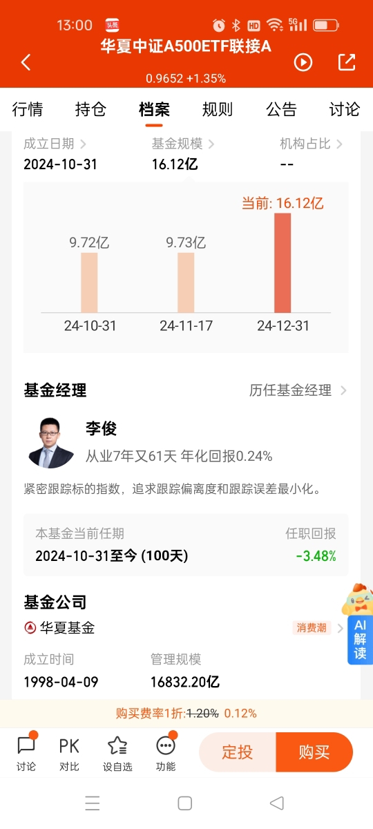 #我正在投资华夏中证A500ETF联接A#,打卡第四次。