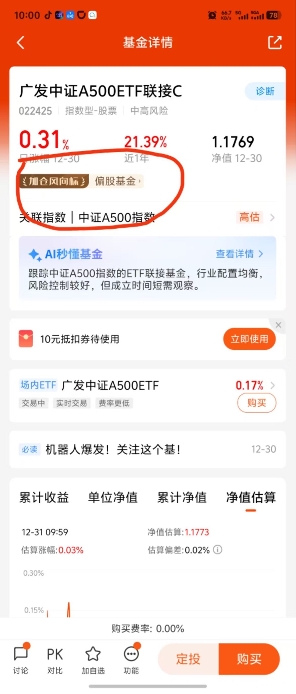 别光盯着单一赛道,组合里也得配点宽基压舱石,这个A500进了加仓榜,行业分散,波动相对小。这种震荡行情能跑赢大盘就很好了,我也加了点$广发中证A500ETF联接C$