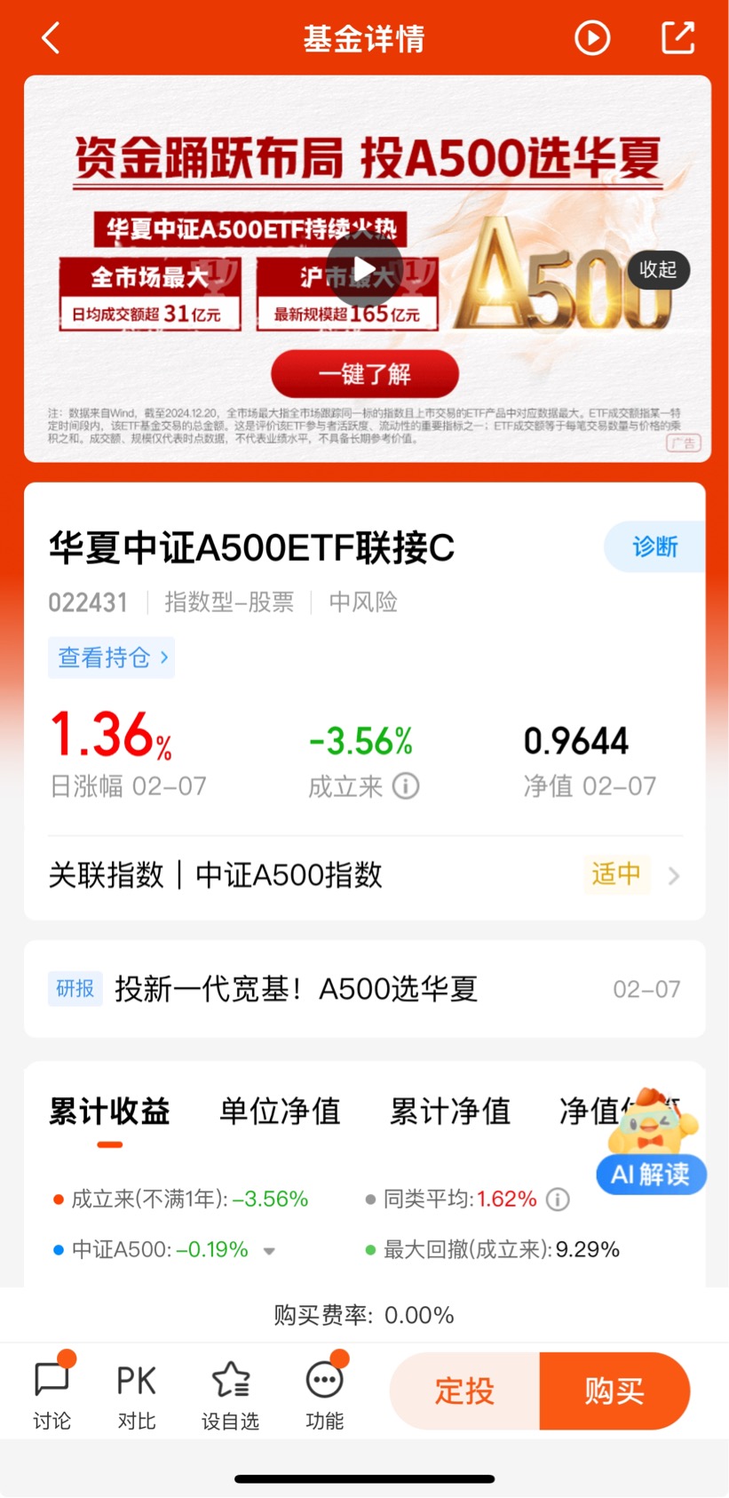 打卡华夏A500,第28天。华夏中证A500ETF联接C(022431)作为一只