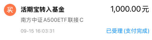 $南方中证A500ETF联接Y(OTCFUND|022918)$
