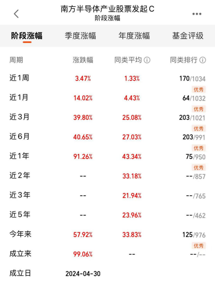 $南方半导体产业股票发起C(OTCFUND|020554)$(020554)可以多留意,它专门投半导体自主可控的领域,比如设备、零部件、材料、EDA软件这些国产替代的关键环节,正好能抓住产业链自主化的机会。在AI突破和需求增长的带动下,后续发展空间不小,业绩也能说明问题,近1个月涨了14.02%,近3个月39.80%,近1年更是达到91.26%。