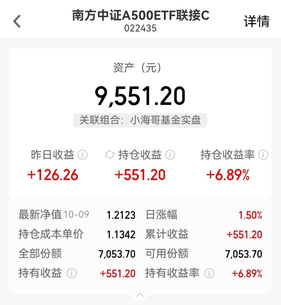 $南方中证A500ETF联接A(OTCFUND|022434)$