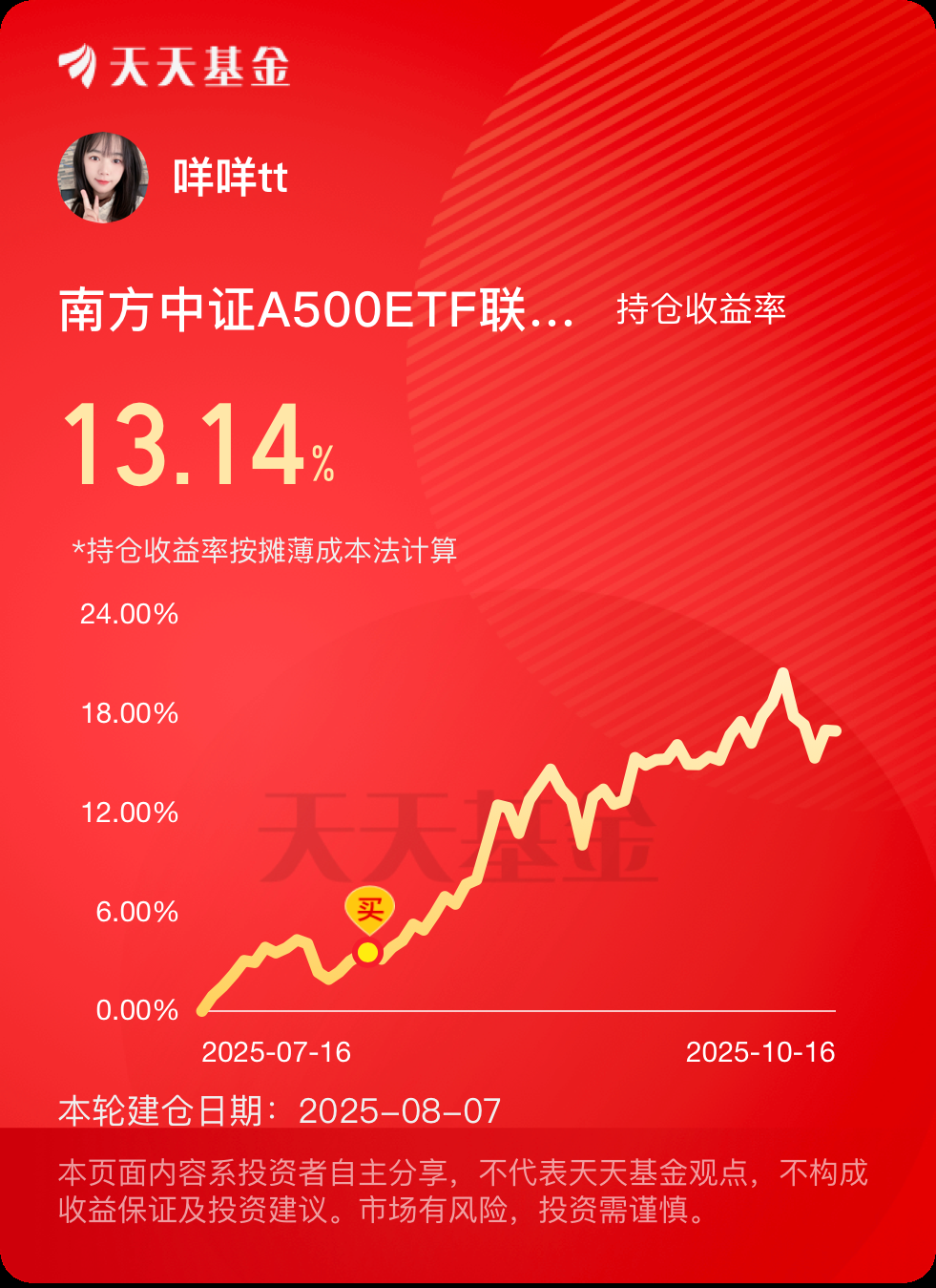 最后补充一句:如果想在股市长牛中找更均衡的配置,可以关注 $南方中证A500ETF联接C(OTCFUND|022435)$(022435)。它紧密跟踪中证A500指数,手续费低流动性好,作为底仓既能分散风险,又能把握整体经济增长红利,适合长期持有。