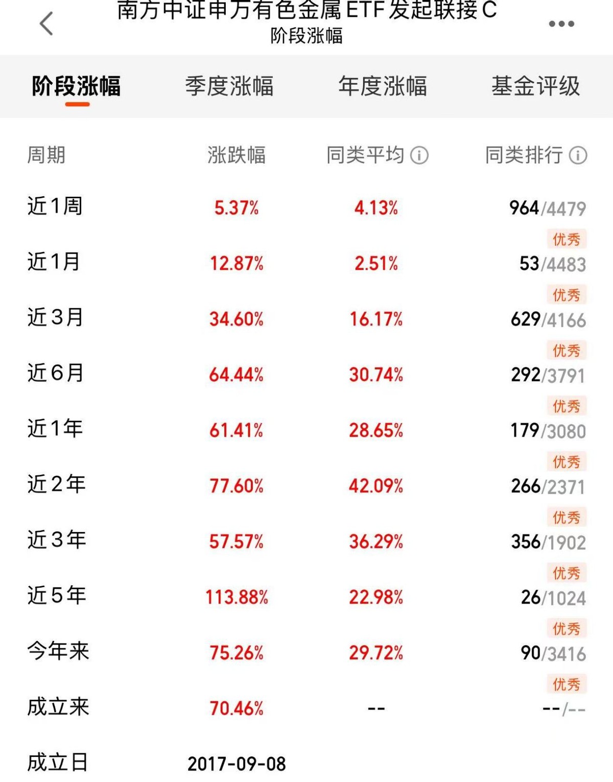 其中$南方中证申万有色金属ETF发起联接C(OTCFUND|004433)$就是个很实用的工具,它的优势很明显:首先覆盖面广,从传统的铜铝到新能源相关的锂、稀土等细分领域的龙头公司都包含在内,能自然分散单一品种的风险;其次成分股中具备国际定价话语权的企业占比不低,更容易受益于全球宏观环境的变化;最后投资门槛低,不用股票账户也能参与,交易很便捷。从业绩来看,这只基金近1周上涨5.37%,近1月上涨12.7%,近三月上涨34.60%,近6月上涨64.44%,近1年上涨61.41%,多阶段表现都很亮眼,值得重点关注。