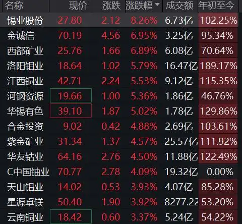 今天开盘,市场的目光又被有色金属板块吸引过去了。锡业股份冲高超过8%,金诚信、西部矿业也涨了6%以上,江西铜业、洛阳钼业这些老面孔同样表现活跃。这已经不是零星的火花了,如果你今年关注过市场,就会发现以铜、金、银为代表的有色金属,是贯穿全年的强势主线,相关板块年内涨幅相当可观。