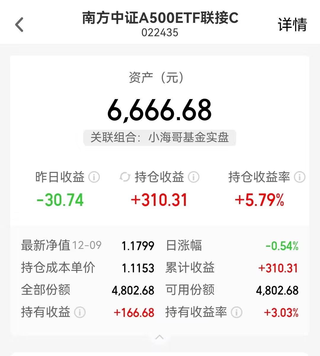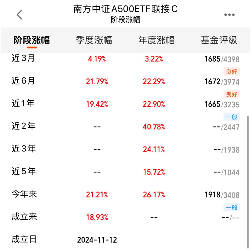 $南方中证A500ETF联接A(OTCFUND|022434)$