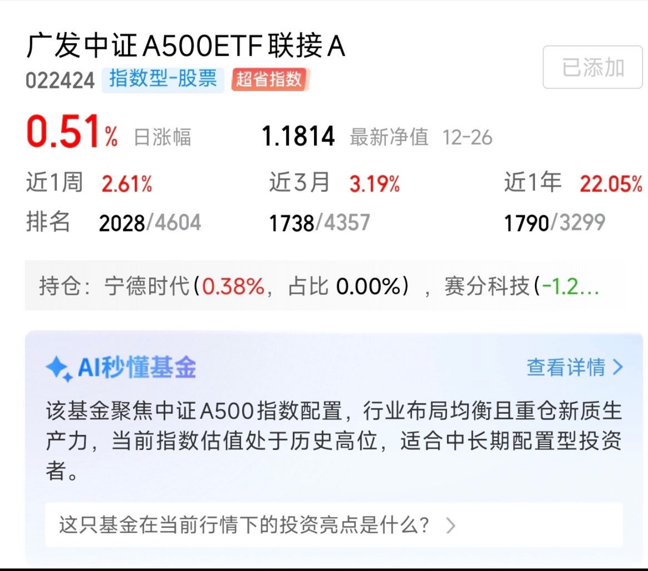 申购费全免?在超省专区看到的,广发这只A类免申购费先小金额买了一点,体验好了再加,反正没手续费成本压力$广发中证A500ETF联接A$