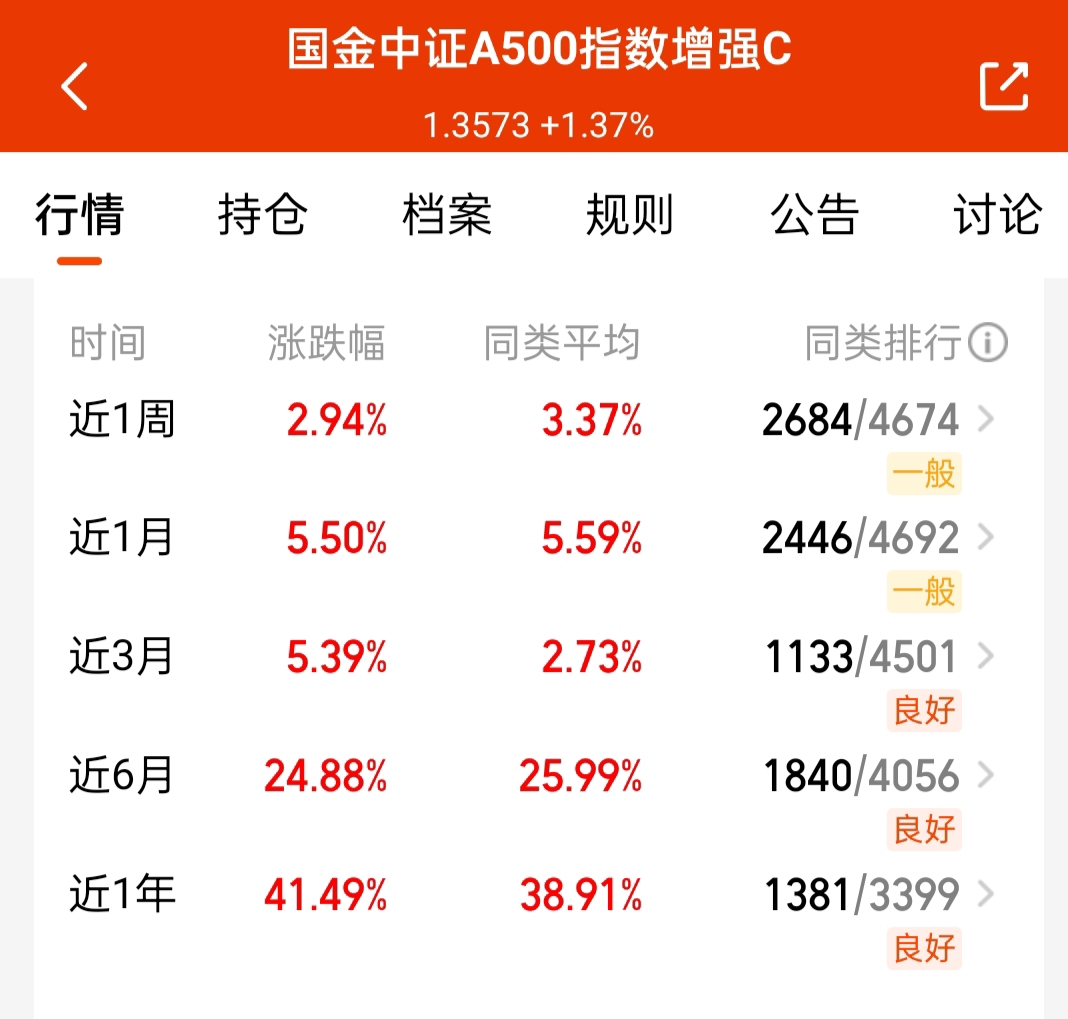 长期还是宽基比较稳,$国金中证A500指数增强C$各阶段业绩挺稳,年化也超41个