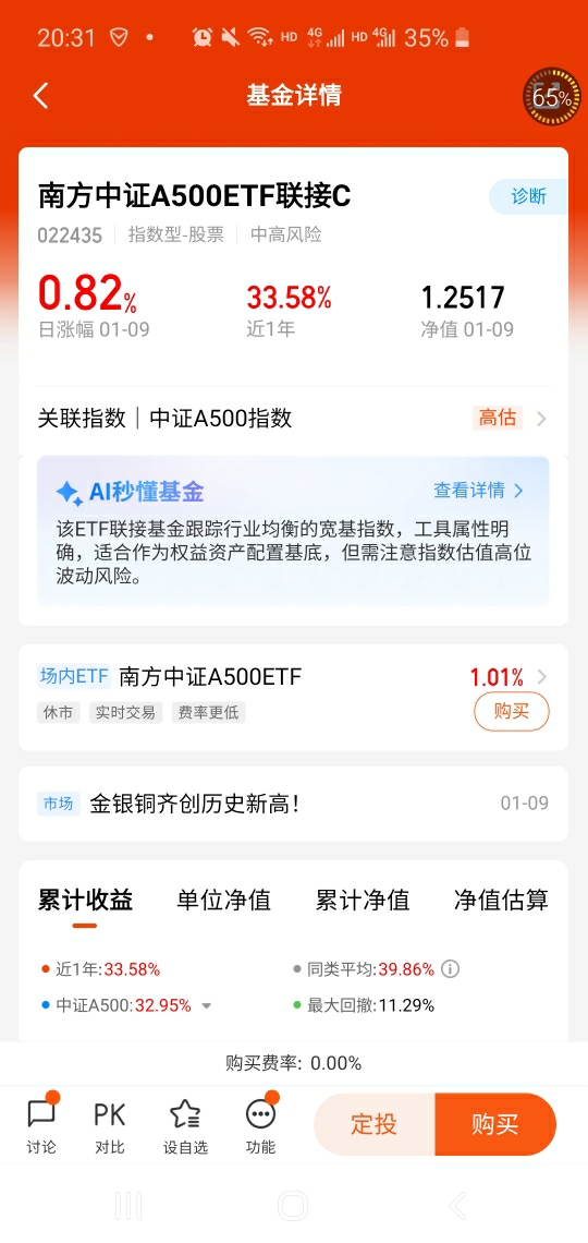 $南方中证A500ETF联接C(022435)$