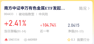 数据摆在这,2025年申万有色金属板块直接涨了88.21%,妥妥的全市场“冠军”。进入2026年,这波有色行情没歇着,专门盯着有色板块的$南方中证申万有色金属ETF发起联接C(OTCFUND|004433)$走势一直很稳,昨天单日涨了超1个点,今天还在往上走,预估涨幅已经超2个点,单位净值更是一路刷新新高。