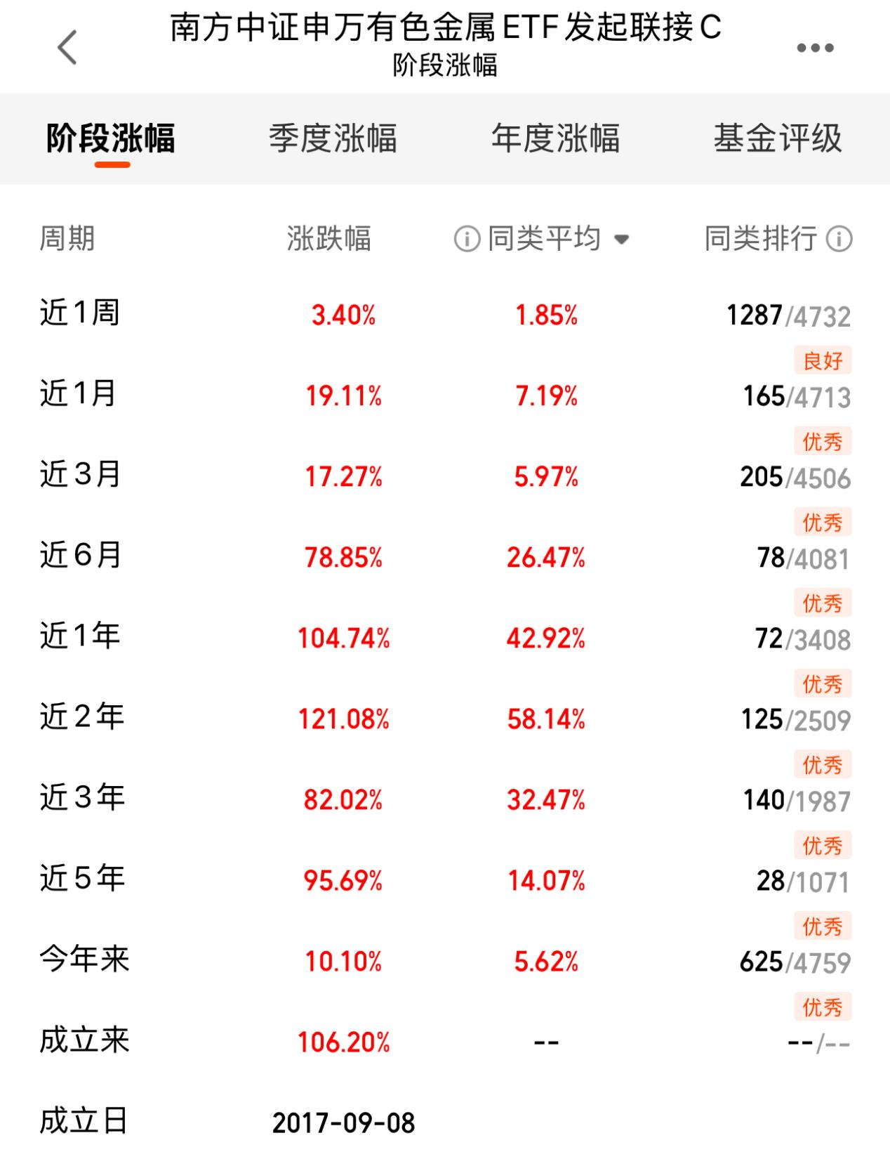 $南方中证申万有色金属ETF发起联接A(OTCFUND|004432)$