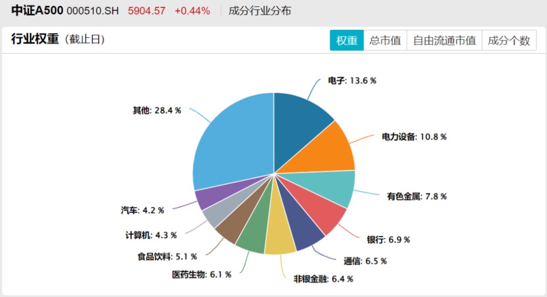 首先,我们得看看它跟踪的指数——中证A500指数。这个指数有个很大的特点,就是它的定位和当下中国经济转型的方向扣得比较紧。它涵盖了新能源、高端制造、TMT这些新经济领域,这些行业的权重加起来超过了50%。说白了,它押注的是中国未来经济增长的主要引擎,长期来看,逻辑相对更清晰一些。而且它编制方法讲究“行业均衡”和龙头优选,不是把宝全押在一个行业上,这种结构天然地分散了风险,避免了你在单一行业上踩大坑的可能。