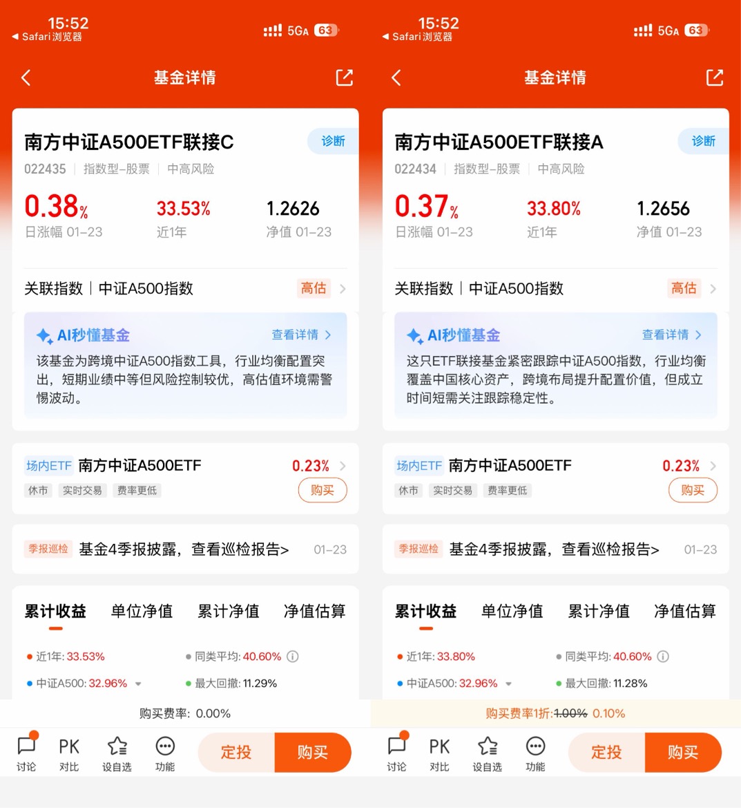 指数好,还得有好的产品来承载。我之所以提到南方这只联接基金,是因为它背后挂钩的南方中证A500ETF(159352)是市场上的标杆产品之一,规模大,流动性也比较好。联接基金的好处是,它可以通过场外渠道像普通基金一样方便地申购赎回,特别适合想做定投或者不想开股票账户的朋友。这只联接基金A类份额(022434)成立于2024年11月,由基金经理朱恒红管理,目标就是紧密跟踪中证A500指数。甚至,南方基金公司自己都用自有资金投资了这只产品,并且承诺至少持有一年以上,这多少也体现了公司对自家产品的信心。