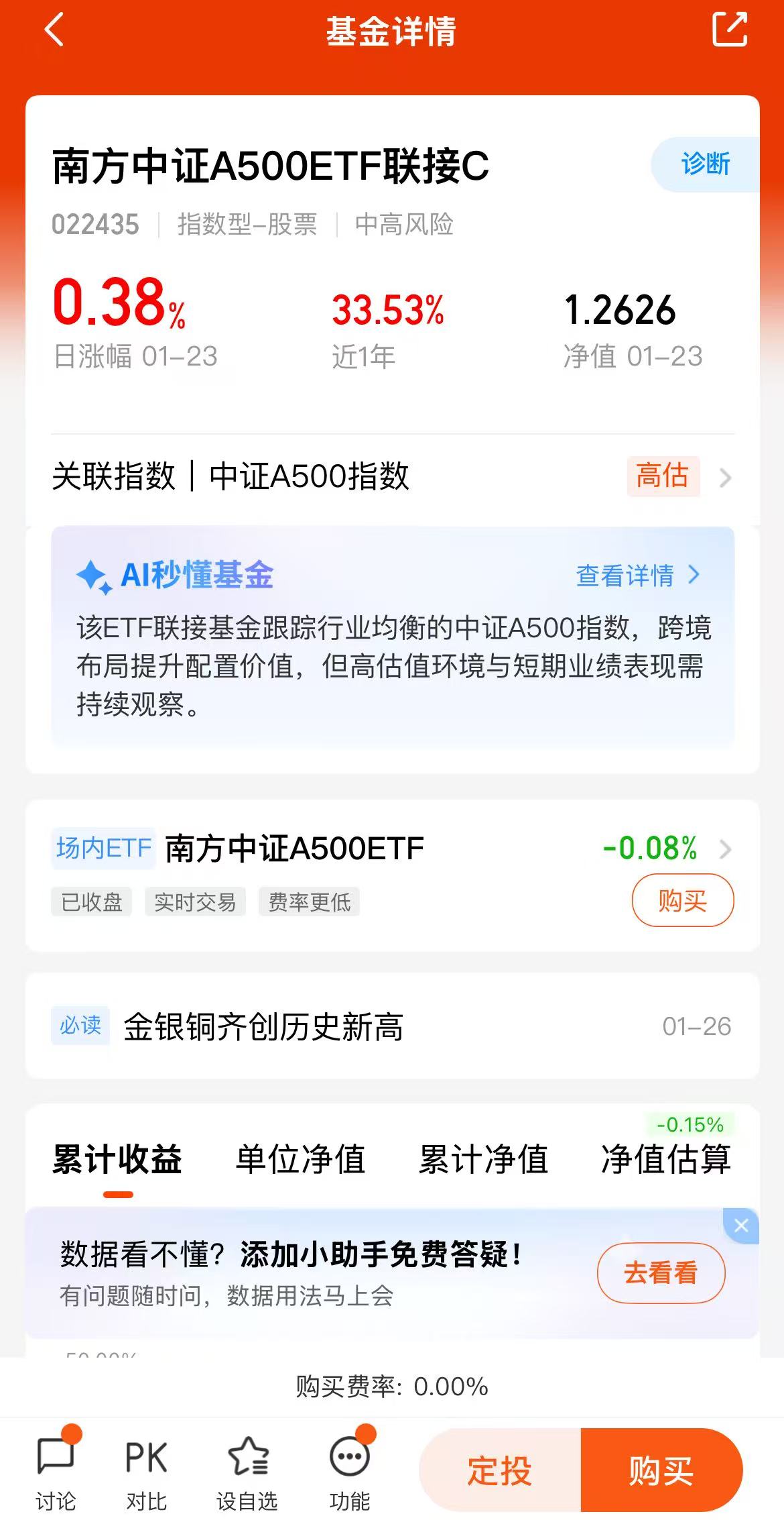 南方基金是国内首批成立的基金公司之一,在指数投资领域深耕多年,拥有丰富的ETF及联接基金管理经验。南方基金旗下指数基金产品线覆盖宽基、行业、主题等多个领域,其指数跟踪精度和风控能力均处于行业前列。南方中证A500ETF作为场内流动性较好的A500标的,日均成交额超5亿元,为联接基金的申赎运作提供了充足的流动性支持。
