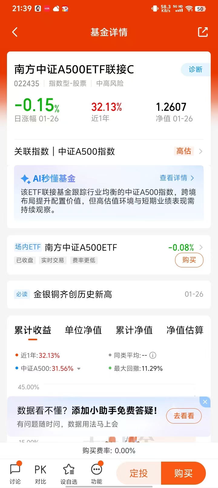 $南方中证A500ETF联接C(OTCFUND|022435)$