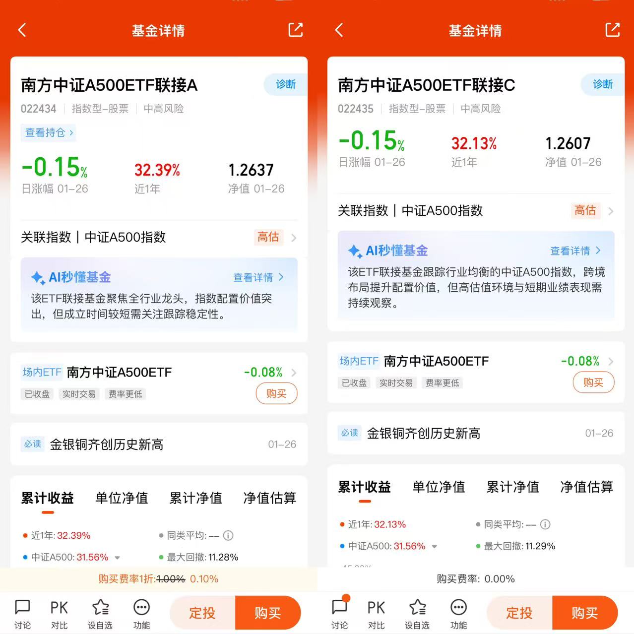 投资门槛低:场外联接基金支持低至10元的申购金额,且无需开通证券账户即可参与投资,大幅降低了普通投资者获取中证A500指数收益的门槛。