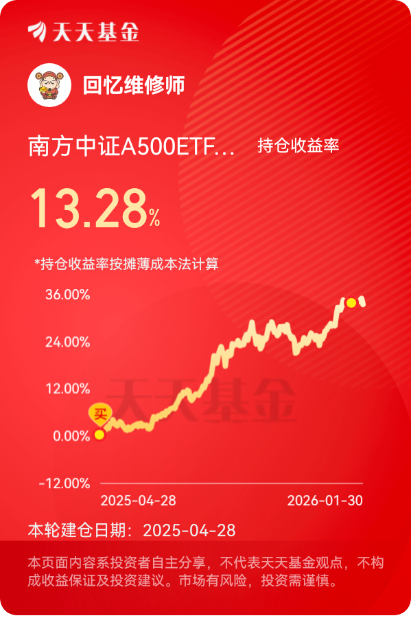 所以我提前布局了南方中证A500ETF联接C(022435),因为朱恒红基金经理的投资经验相当丰富。@南方基金