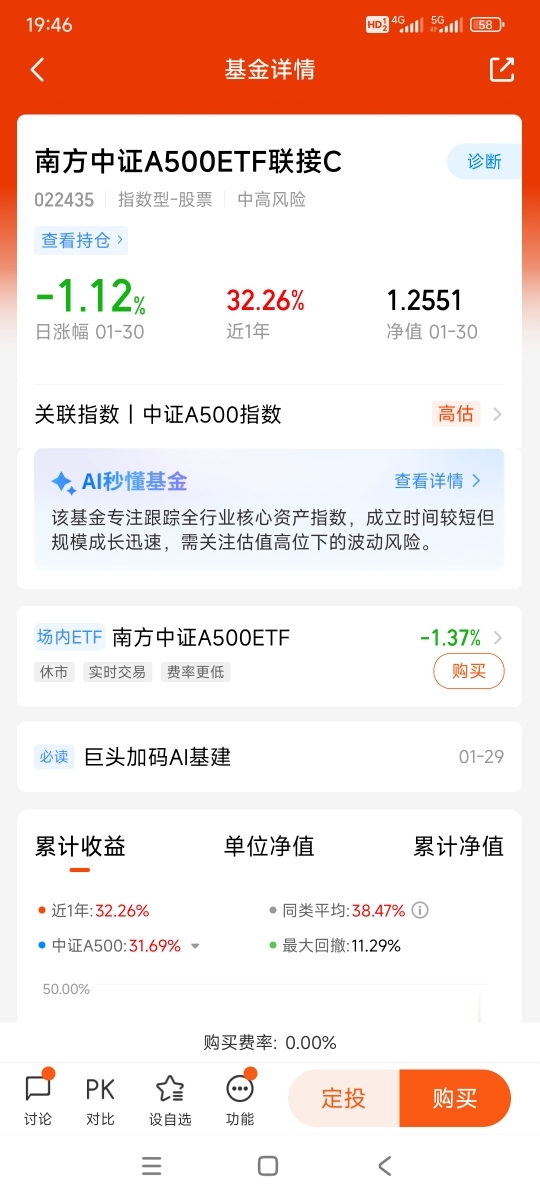再说说南方基金这只产品,那绝对是“好指数配好管理人”。南方基金做指数投资的实力不用多说,近三年的跟踪误差全市场第一,简单说就是能精准跟上中证A500的走势,不会出现跑不赢指数的情况,我们买指数基不就是为了吃指数的收益嘛,这点太重要了。而且这只基的费率真的卷到天花板了,管理费才0.15%,托管费0.05%,比很多同类指数基低一大截,长期持有下来,手续费省的都是真金白银。