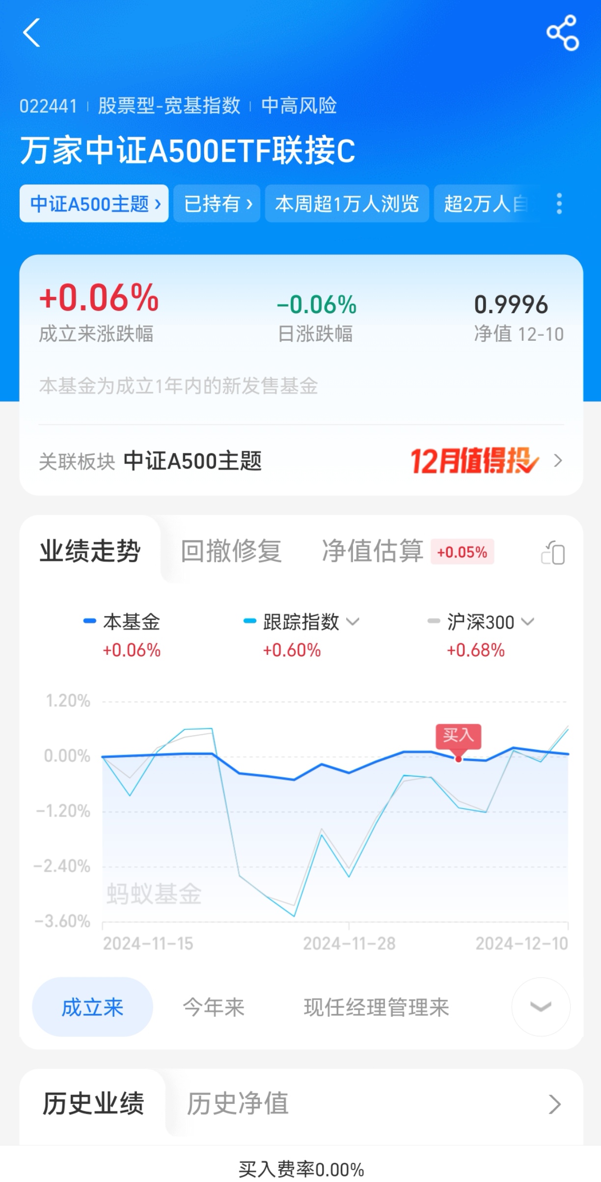 宽基:要知道新“国九条”后,中证A500指数已经妥妥的成为了国家队的新宠。相比于沪深300指数,行业分布更加均衡广泛,持仓都是优质的核心龙头标的,其展现出巨大的投资潜力和市场价值,是与沪深300相媲美的核心宽基指数,可以说更胜一筹。跟沪深300比起来,它走得更加稳健。 相较于其他主流宽基指数,优势更明显,上次我加了5千$万家中证A500ETF发起式联接C$ ,看走势图真的算比较稳的,正好昨天发了工资,今天继续加5千元,这只基金自成立以来也是涨的,还不错,目前规模已经突破了9.07亿元,持有该基金的宝宝也超过1万人了,还在不断扩大中,而且它的基金经理杨坤从业有5年多了,年均回报也是超3.53%的,现在上车万家中证A500C更符合新质生产力发展方向,兼具价值和成长,代表着未来中国经济发展趋势,趁现在行情还才启动,可以尽快跟上了。