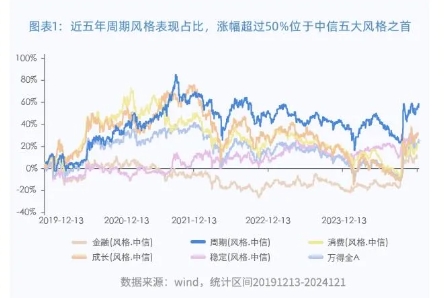 数据显示,过去5年,周期风格持续跑赢了A股市场,涨幅位于中信五大风格之首。传统周期和周期成长在不同的经济周期和市场环境下,都有各自的投资价值和投资机会。如果能把周期和成长结合起来,一手周期,一手成长,两手并重,相辅相成,会对大势和各种投资机会有更完整和准确的认识和把握,有望带来更好的投资效果。