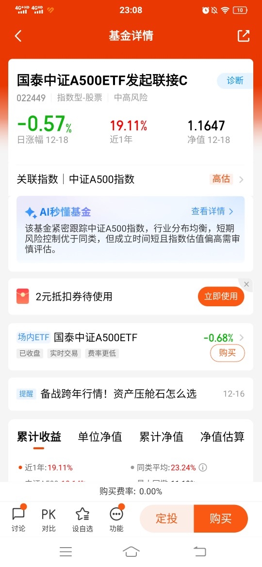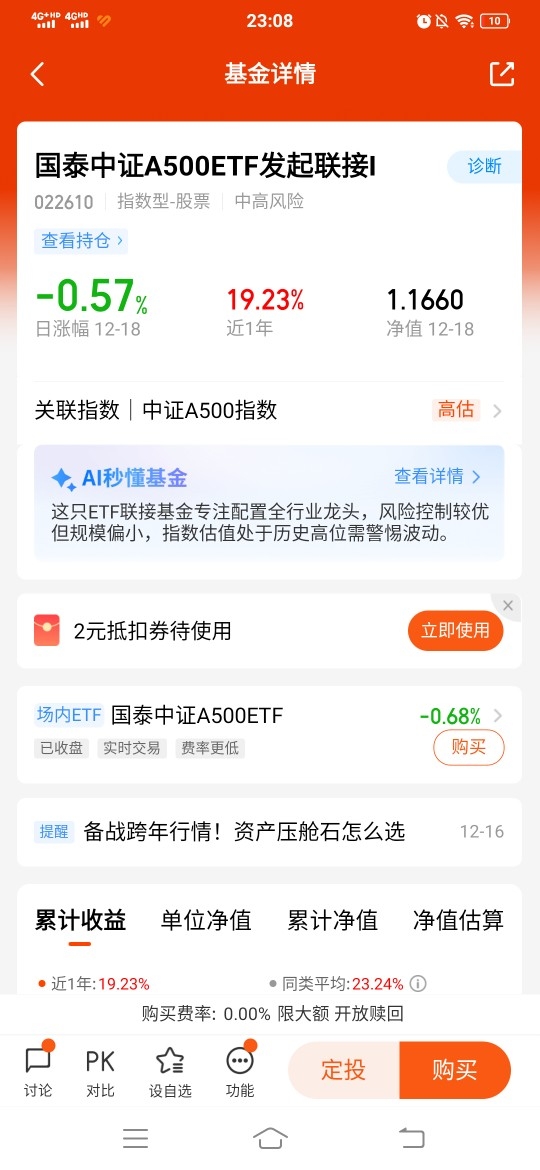 波动较大:作为股票指数基金,短期波动(近6个月19.30%)仍高于债券等传统压舱石