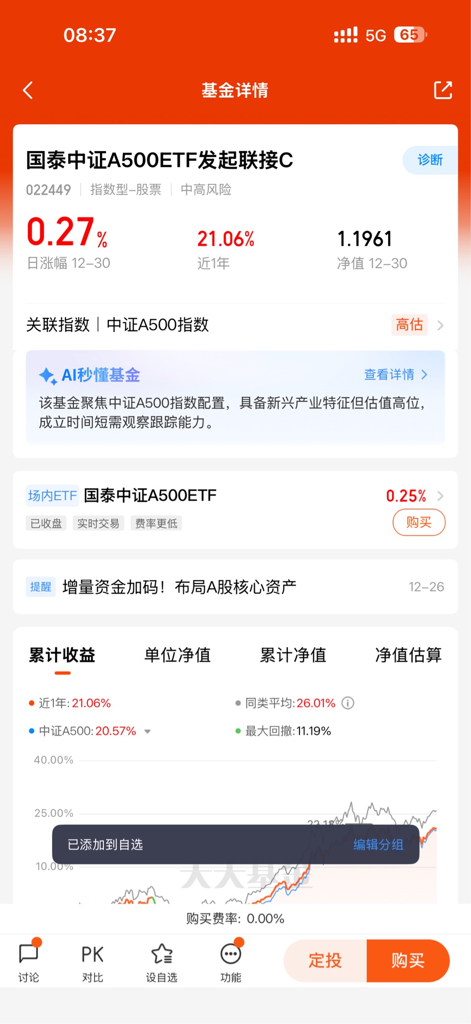 站在2026年的起点展望,随着全面注册制的深入推进,中小盘优质企业的价值将进一步凸显,中证A500指数的成分股有望迎来业绩与估值的双重提升。国泰中证A500ETF发起联接A,凭借其清晰的指数跟踪逻辑、均衡的持仓结构和低廉的投资成本,无疑是普通投资者把握宽基成长红利的理想工具。在年末布局中,不妨将其纳入核心仓位,以定投的方式,静待时间带来的复利回报。