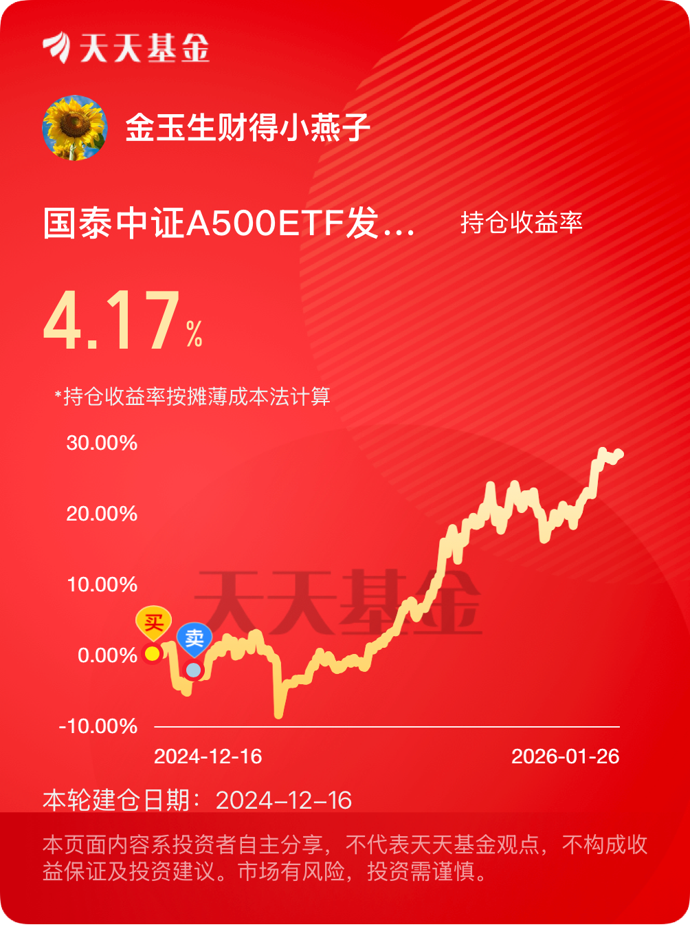 投资到最后,或许就是化繁为简。与其在市场的喧嚣中疲于奔命,不如找到一个扎实的锚点,然后耐心地、定期地投入。时间,会给我们答案。$国泰中证A500ETF发起联接A$ $国泰中证A500ETF发起联接C$ $国泰中证A500ETF发起联接I$ #晒收益# @非常道之动 @反反复复尴尬