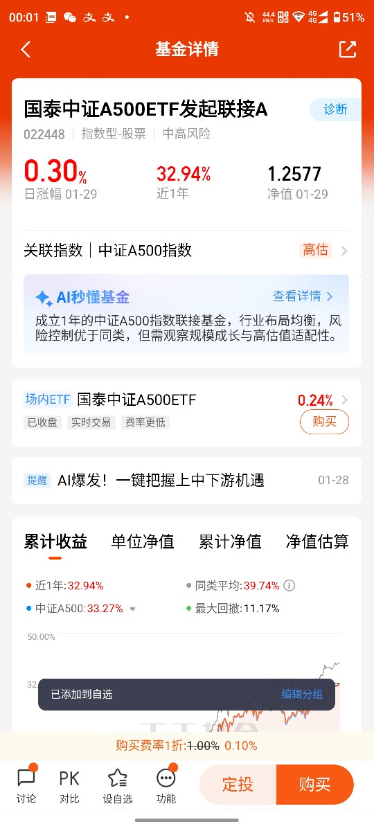 第二,低门槛易操作,普通投资者轻松参与。作为场外联接基金,国泰A500无需开通股票账户,1元或10元即可起投,没有资金门槛限制,不管是上班族还是新手投资者,都能轻松入场布局;日常在主流理财平台就能申赎,操作便捷灵活,既适合一次性布局,也适合定投加仓,完美适配普通投资者的投资习惯,解决了场内ETF交易不便的问题。