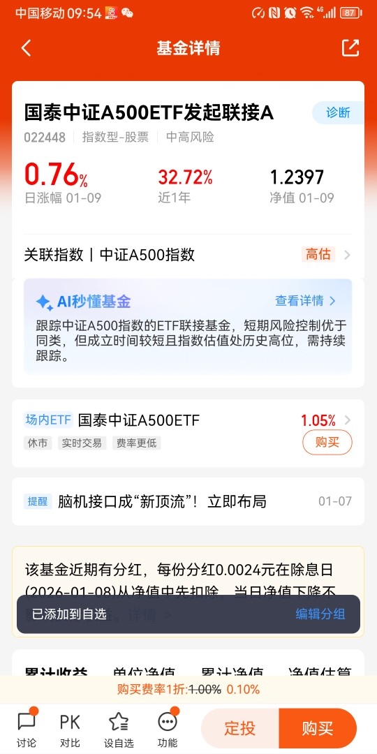 国泰中证A500ETF我觉得就很不错!近一年涨超32%呢!