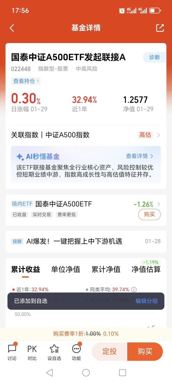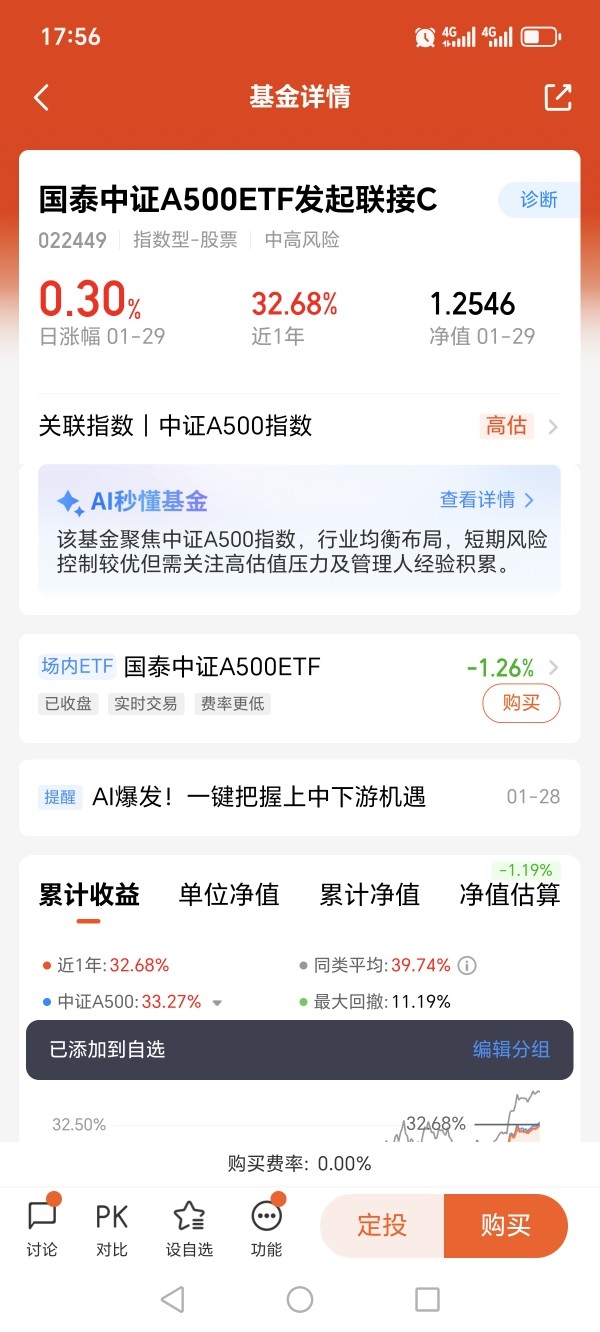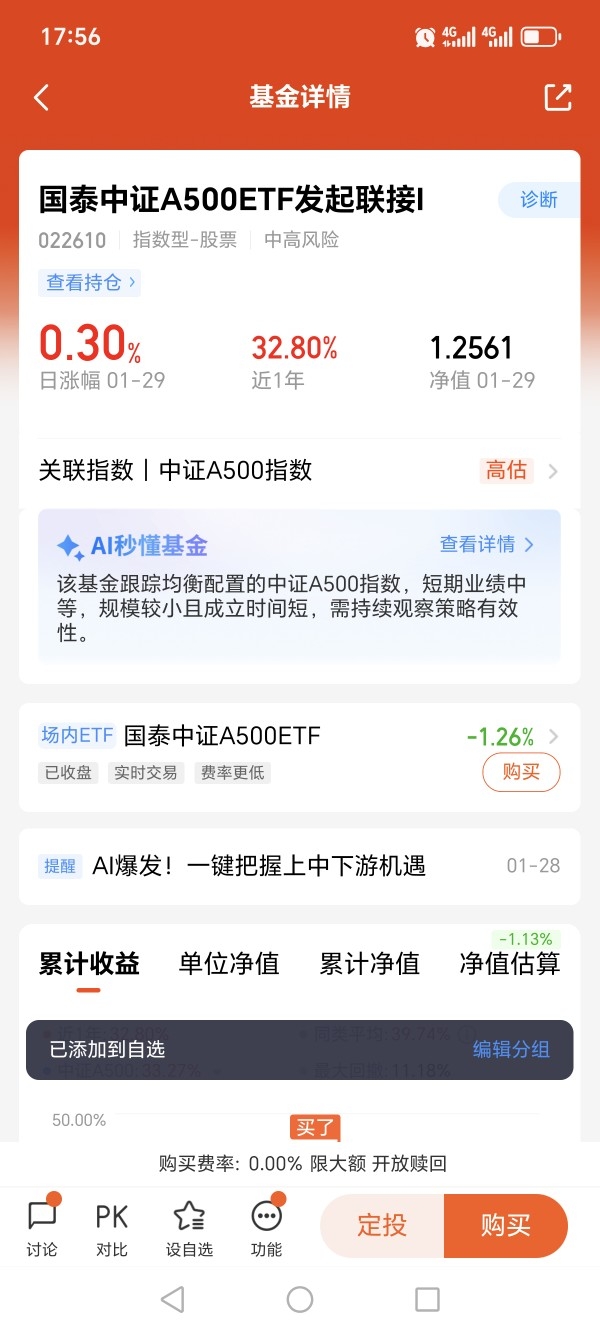 $国泰中证A500ETF发起联接A$
