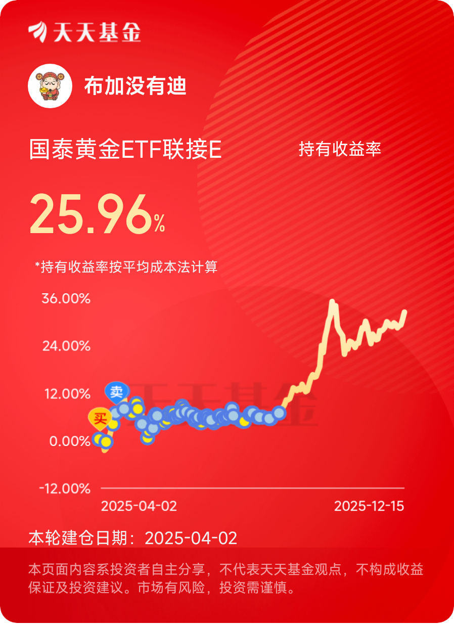 对于我而言,积极配置国泰中证A500ETF发起联接C并非盲目跟风,而是基于对市场趋势、指数优势与产品价值的深度认可。在具体操作上,我将采用“分批建仓+长期持有”的策略,根据市场波动逐步加大配置比例,既规避短期震荡风险,又锁定中长期成长收益。相信在跨年行情的多重利好催化下,这只优质宽基联接基金将为我的投资组合带来稳健可观的回报。@咳咳咳哦 @有耐心的竹风少3 @国泰基金 #晒收益#