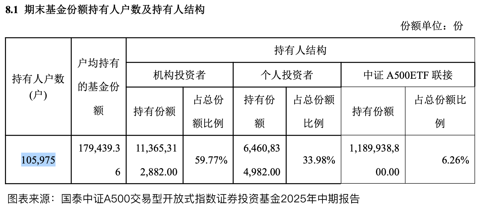 目前,一共有32只ETF跟踪中证A500指数(不含增强策略ETF),司令偏向于“规模大、流动好、费率低”的产品。最近发现,国泰旗下的中证A500ETF(159338),不仅满足上述几个条件,根据2025年基金中报数据披露,截至2025年6月30日,持有人数量还远超同类!