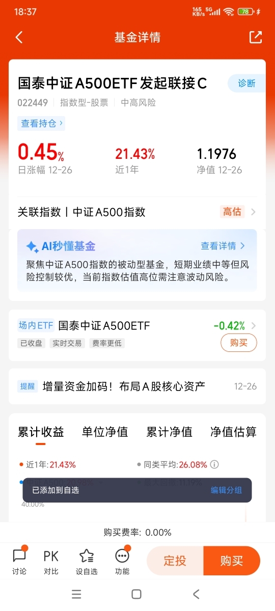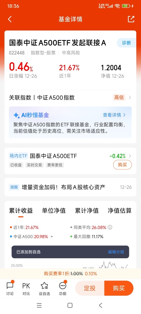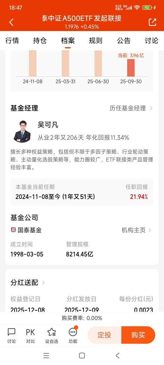 国泰基金旗下中证A500ETF联接产品,成为场外投资者参与这一指数的重要桥梁。产品管理费与托管费合计0.2%,低于行业平均水平,且设置月度分红机制,提升资金使用效率。截至2025年三季度,国泰中证A500ETF规模已达225.51亿元,流动性位居同类前列,保障了联接基金的运作稳定性。