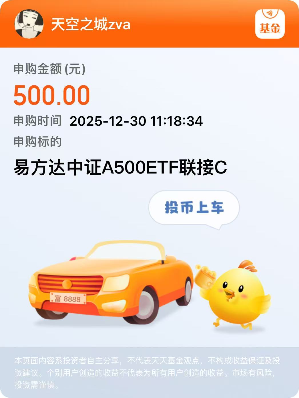 我今天也小加一笔;买入$易方达中证A500ETF联接C(OTCFUND|022460)$